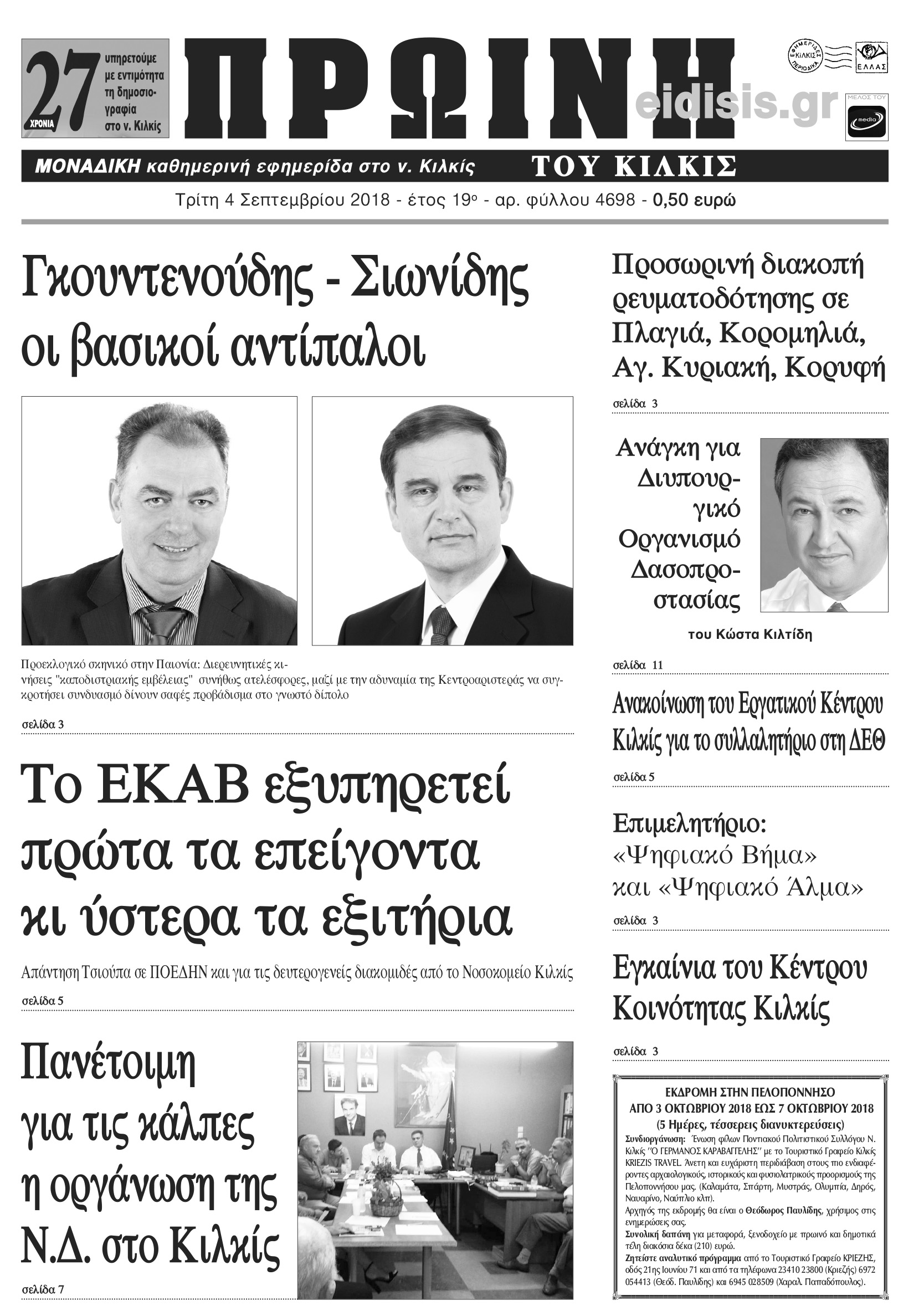 Διαβάστε το νέο πρωτοσέλιδο της Πρωινής του Κιλκίς, μοναδικής καθημερινής εφημερίδας του ν. Κιλκίς
