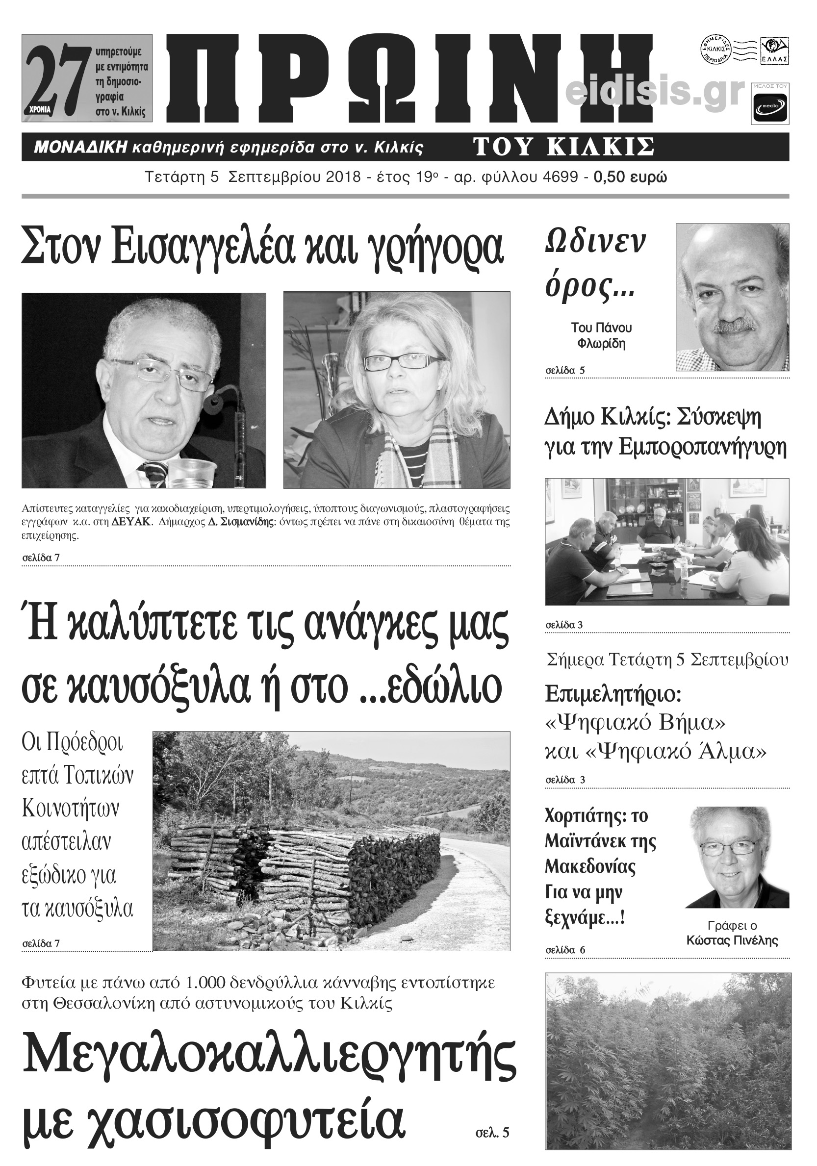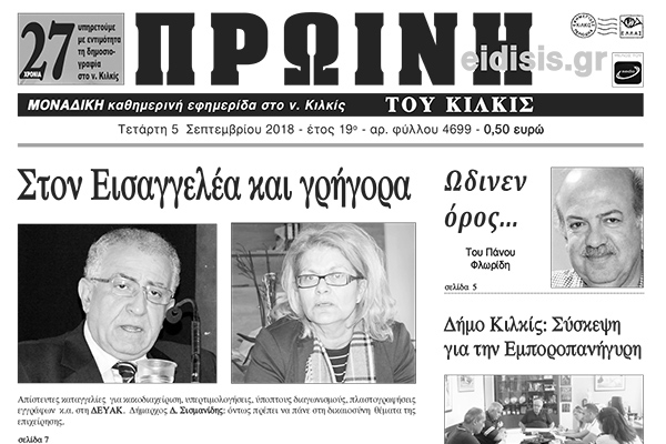 Διαβάστε το νέο πρωτοσέλιδο της Πρωινής του Κιλκίς, μοναδικής καθημερινής εφημερίδας του ν. Κιλκίς
