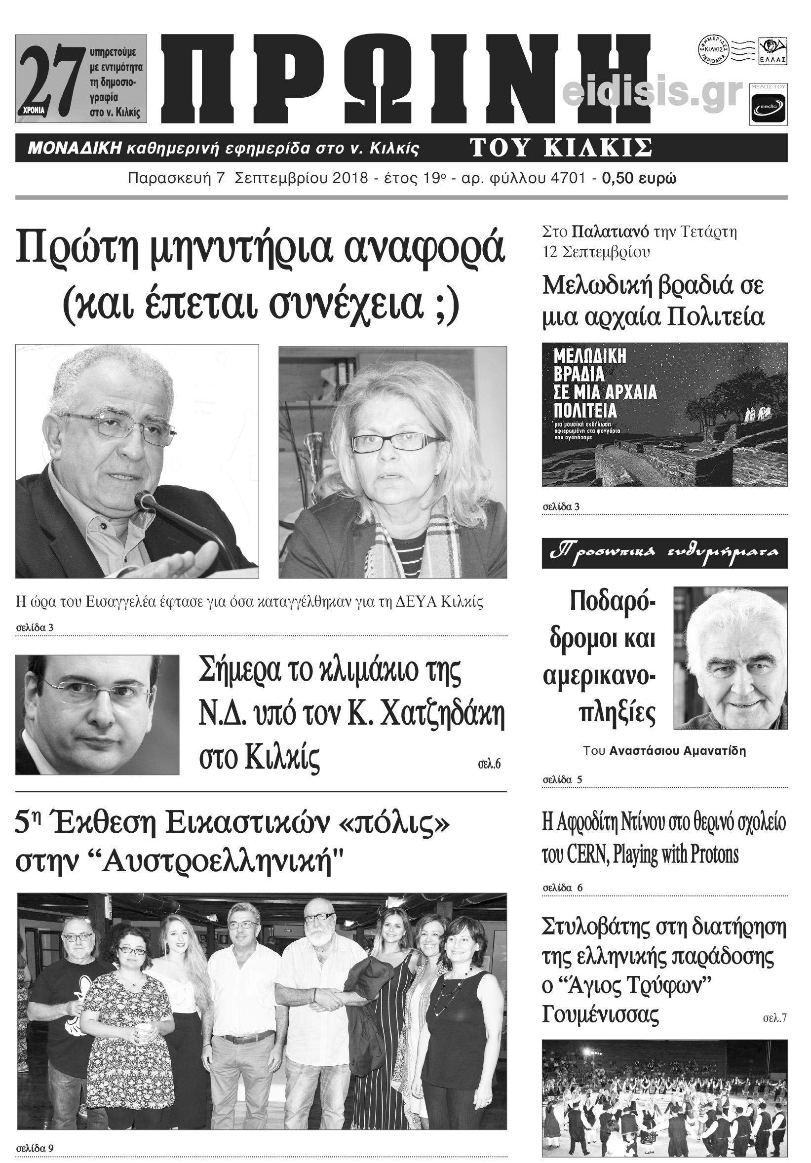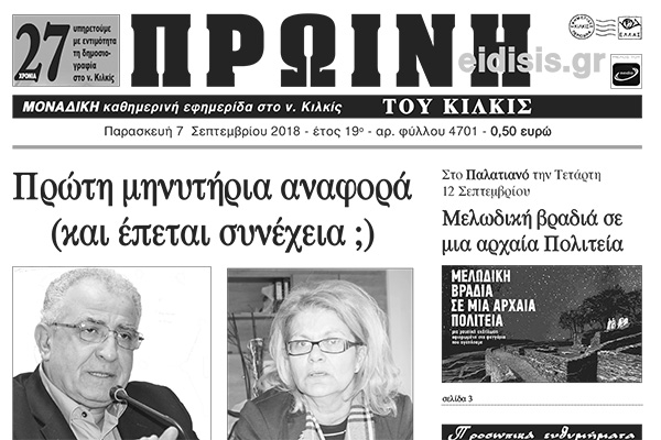 Διαβάστε το νέο πρωτοσέλιδο της Πρωινής του Κιλκίς, μοναδικής καθημερινής εφημερίδας του ν. Κιλκίς