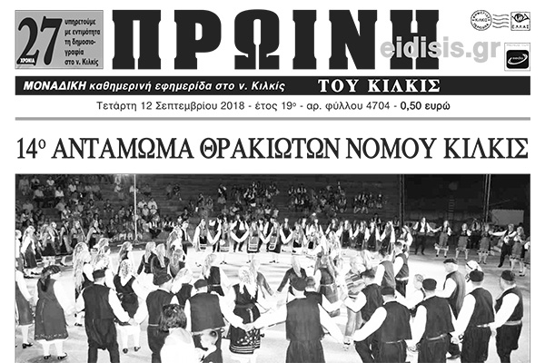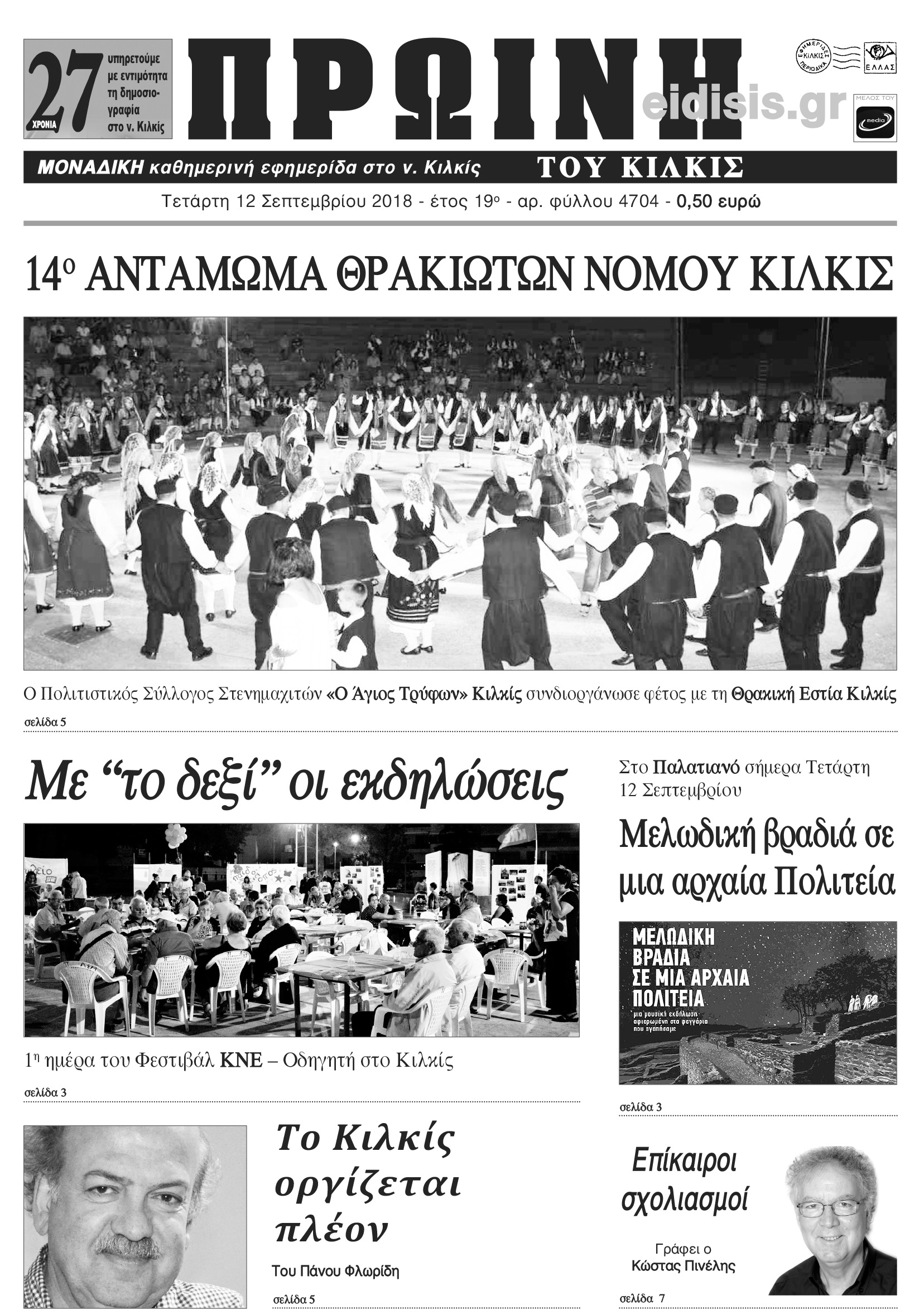 Διαβάστε το νέο πρωτοσέλιδο της Πρωινής του Κιλκίς, μοναδικής καθημερινής εφημερίδας του ν. Κιλκίς