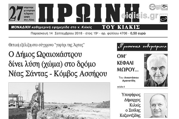 Διαβάστε το νέο πρωτοσέλιδο της Πρωινής του Κιλκίς, μοναδικής καθημερινής εφημερίδας του ν. Κιλκίς