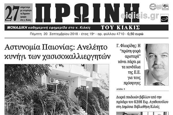 Διαβάστε το νέο πρωτοσέλιδο της Πρωινής του Κιλκίς, μοναδικής καθημερινής εφημερίδας του ν. Κιλκίς