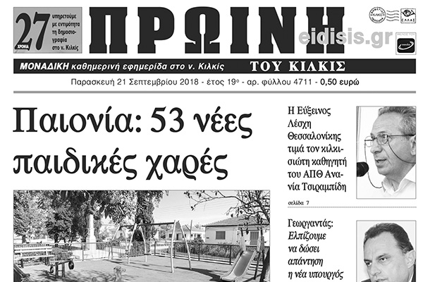 Διαβάστε το νέο πρωτοσέλιδο της Πρωινής του Κιλκίς, μοναδικής καθημερινής εφημερίδας του ν. Κιλκίς