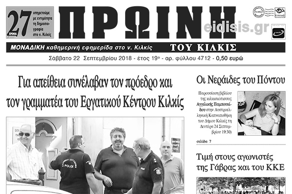 Διαβάστε το νέο πρωτοσέλιδο της Πρωινής του Κιλκίς, μοναδικής καθημερινής εφημερίδας του ν. Κιλκίς