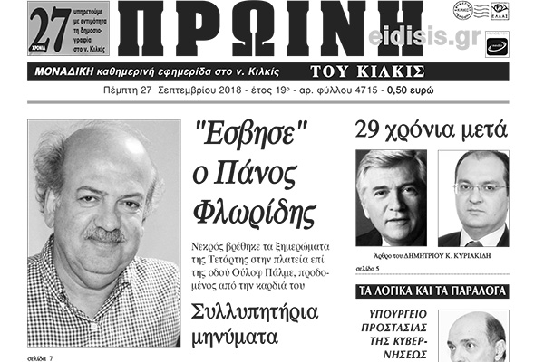 Διαβάστε το νέο πρωτοσέλιδο της Πρωινής του Κιλκίς, μοναδικής καθημερινής εφημερίδας του ν. Κιλκίς