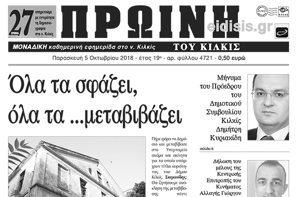 Διαβάστε το νέο πρωτοσέλιδο της Πρωινής του Κιλκίς, μοναδικής καθημερινής εφημερίδας του ν. Κιλκίς