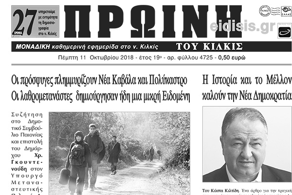 Διαβάστε το νέο πρωτοσέλιδο της Πρωινής του Κιλκίς, μοναδικής καθημερινής εφημερίδας του ν. Κιλκίς