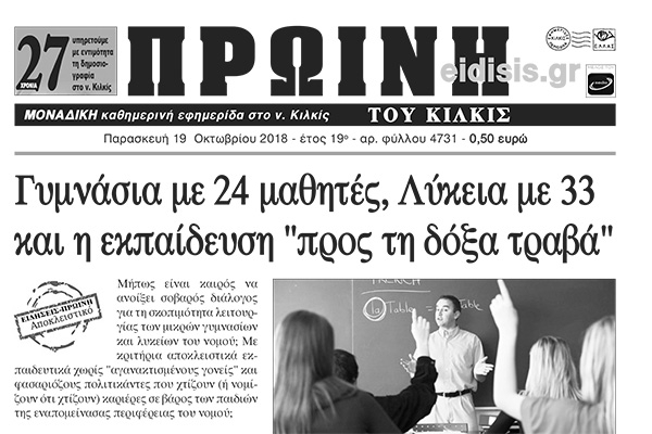 Διαβάστε το νέο πρωτοσέλιδο της Πρωινής του Κιλκίς, μοναδικής καθημερινής εφημερίδας του ν. Κιλκίς