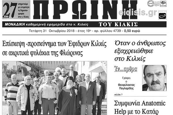 Διαβάστε το νέο πρωτοσέλιδο της Πρωινής του Κιλκίς, μοναδικής καθημερινής εφημερίδας του ν. Κιλκίς
