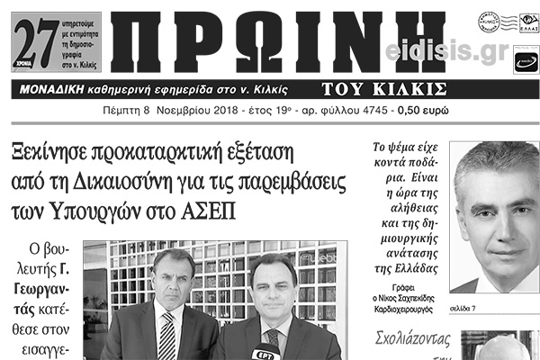 Διαβάστε το νέο πρωτοσέλιδο της Πρωινής του Κιλκίς, μοναδικής καθημερινής εφημερίδας του ν. Κιλκίς