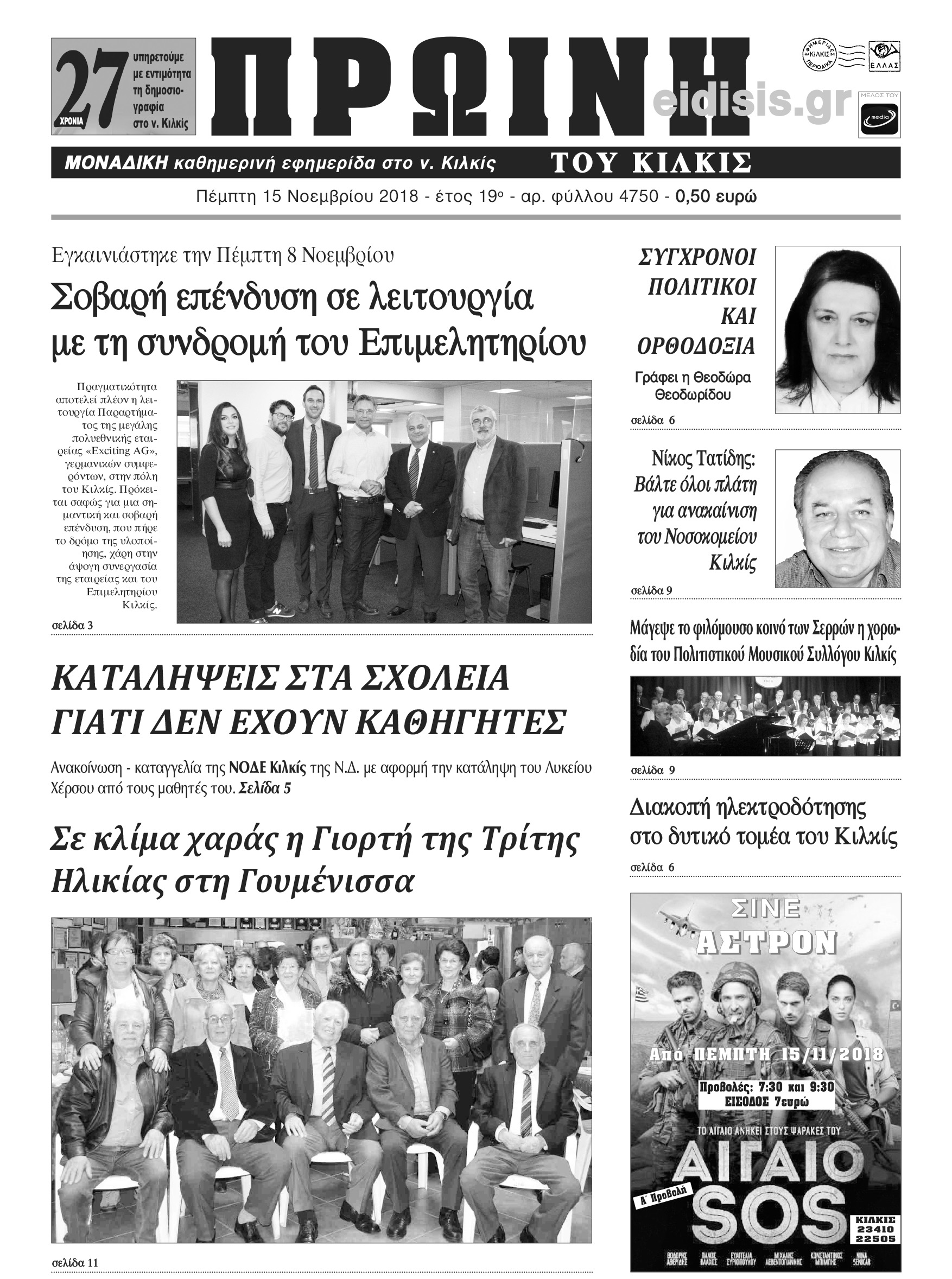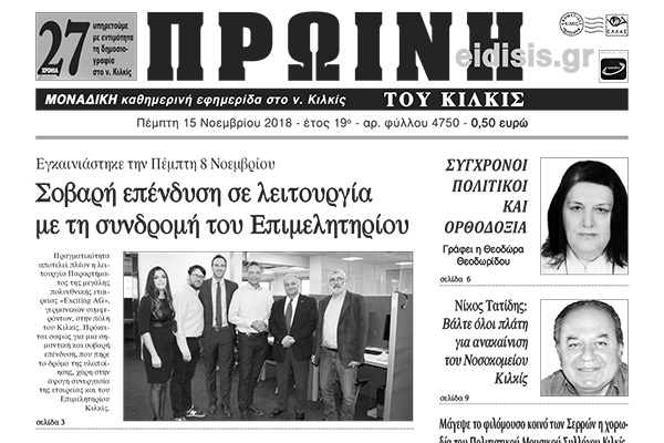 Διαβάστε το νέο πρωτοσέλιδο της Πρωινής του Κιλκίς, μοναδικής καθημερινής εφημερίδας του ν. Κιλκίς
