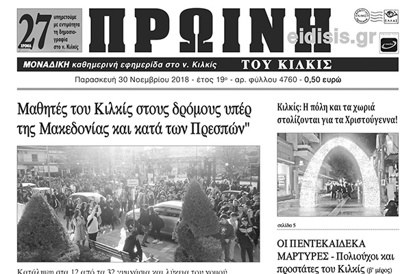 Διαβάστε το νέο πρωτοσέλιδο της Πρωινής του Κιλκίς, μοναδικής καθημερινής εφημερίδας του ν. Κιλκίς