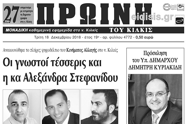 Διαβάστε το νέο πρωτοσέλιδο της Πρωινής του Κιλκίς, μοναδικής καθημερινής εφημερίδας του ν. Κιλκίς