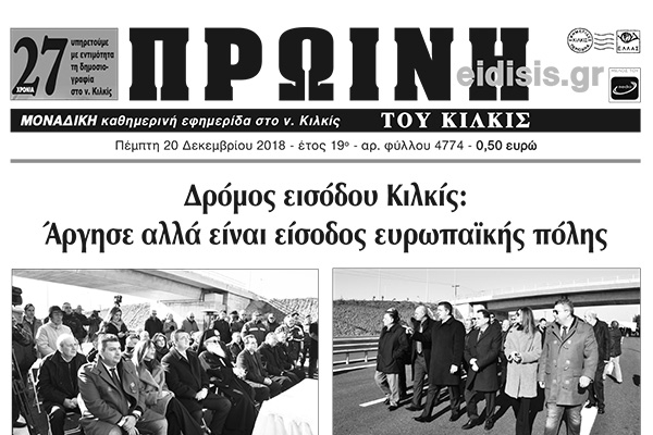 Διαβάστε το νέο πρωτοσέλιδο της Πρωινής του Κιλκίς, μοναδικής καθημερινής εφημερίδας του ν. Κιλκίς