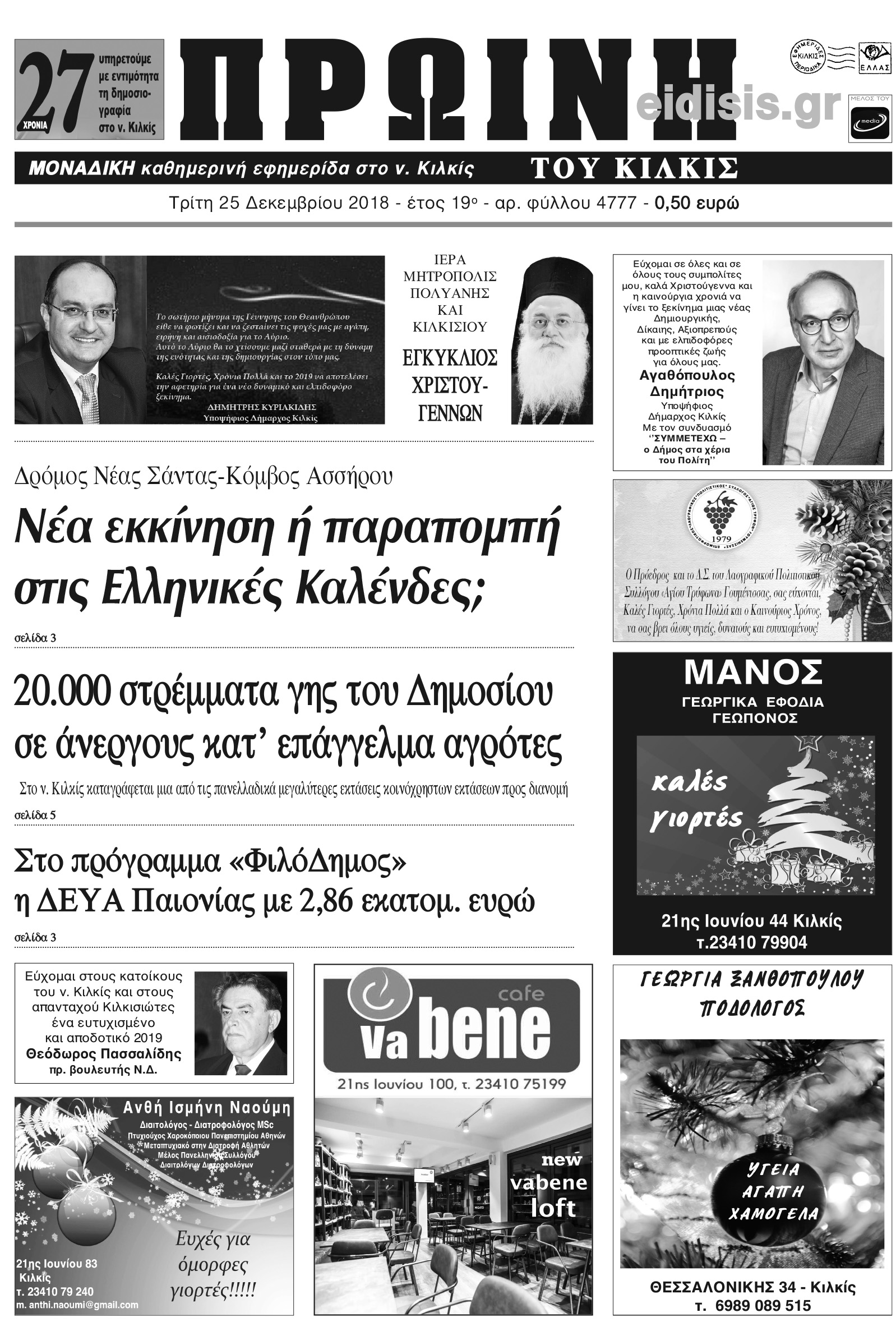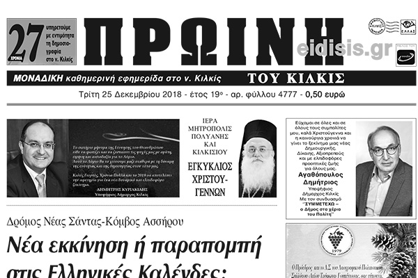 Διαβάστε το νέο πρωτοσέλιδο της Πρωινής του Κιλκίς, μοναδικής καθημερινής εφημερίδας του ν. Κιλκίς