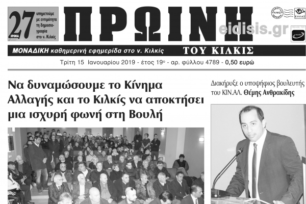 Διαβάστε το νέο πρωτοσέλιδο της Πρωινής του Κιλκίς, μοναδικής καθημερινής εφημερίδας του ν. Κιλκίς