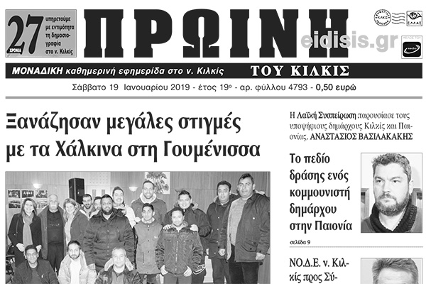 Διαβάστε το νέο πρωτοσέλιδο της Πρωινής του Κιλκίς, μοναδικής καθημερινής εφημερίδας του ν. Κιλκίς