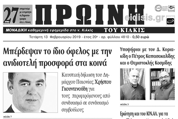 Διαβάστε το νέο πρωτοσέλιδο της Πρωινής του Κιλκίς, μοναδικής καθημερινής εφημερίδας του ν. Κιλκίς