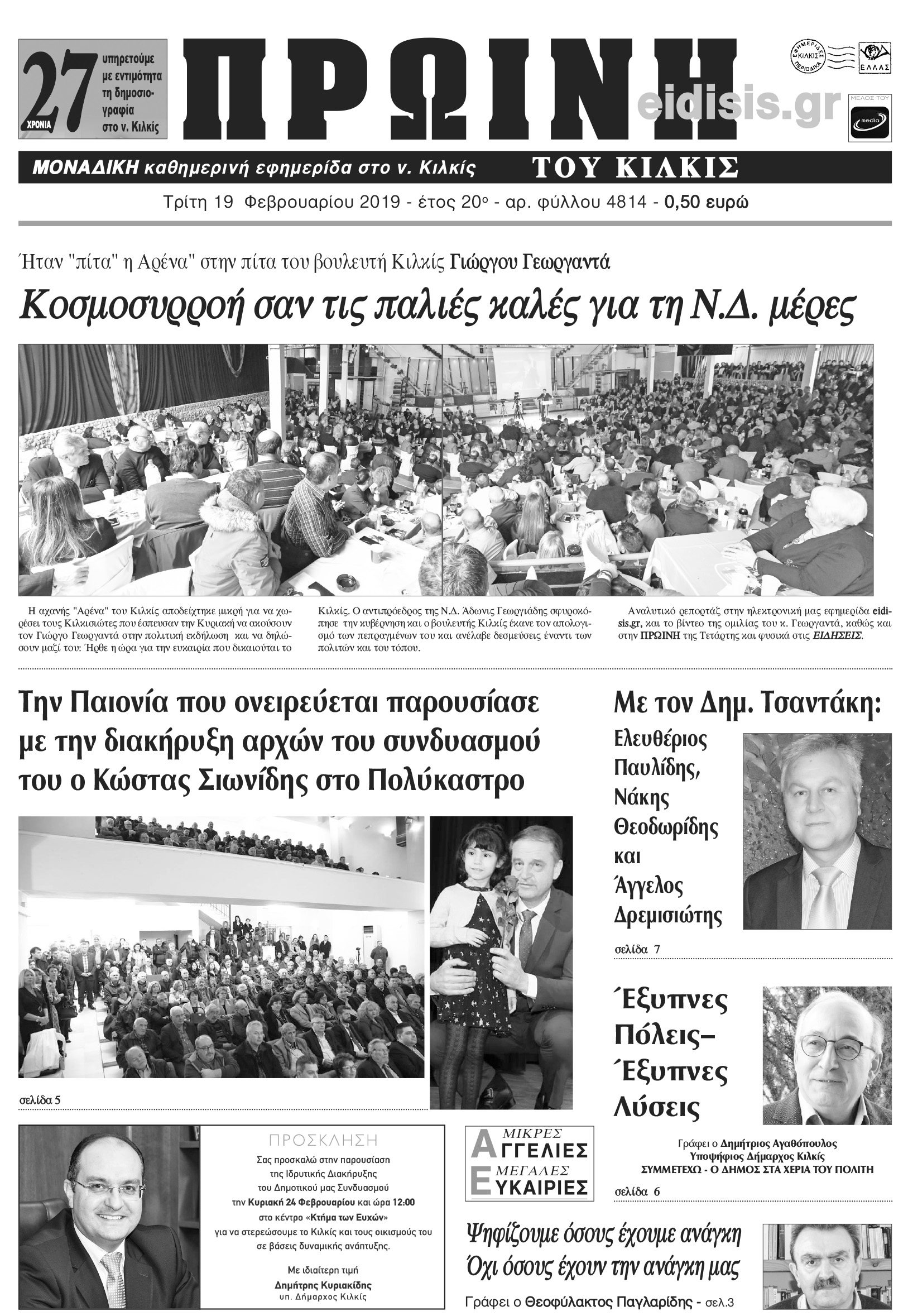 Διαβάστε το νέο πρωτοσέλιδο της Πρωινής του Κιλκίς, μοναδικής καθημερινής εφημερίδας του ν. Κιλκίς