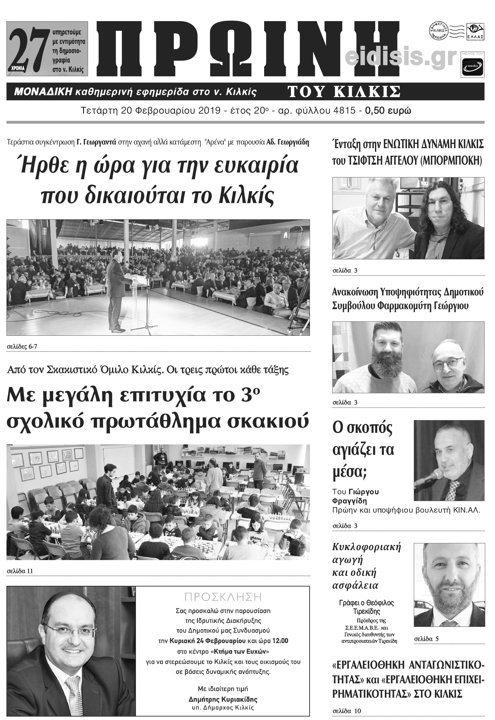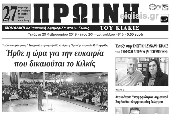 Διαβάστε το νέο πρωτοσέλιδο της Πρωινής του Κιλκίς, μοναδικής καθημερινής εφημερίδας του ν. Κιλκίς
