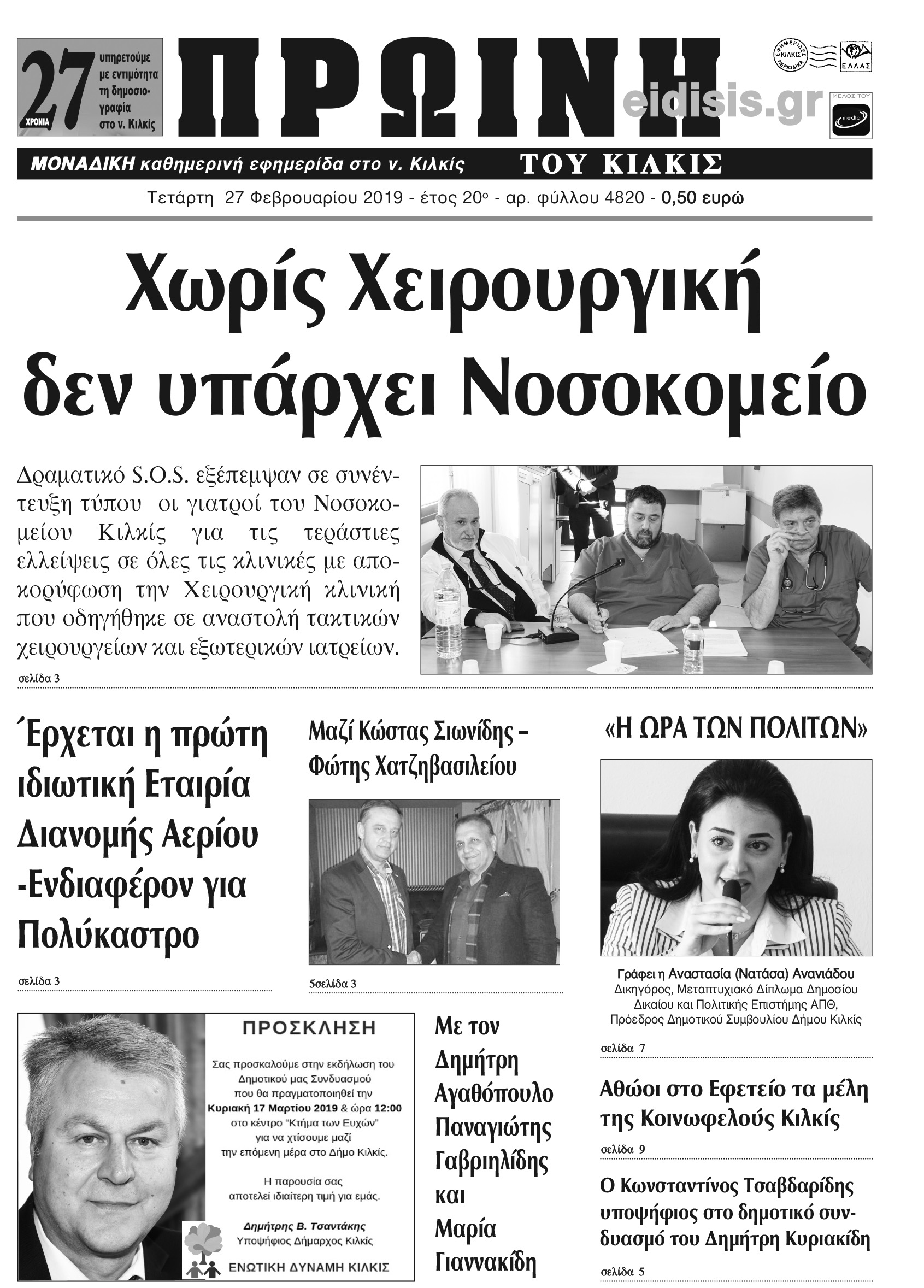 Διαβάστε το νέο πρωτοσέλιδο της Πρωινής του Κιλκίς, μοναδικής καθημερινής εφημερίδας του ν. Κιλκίς
