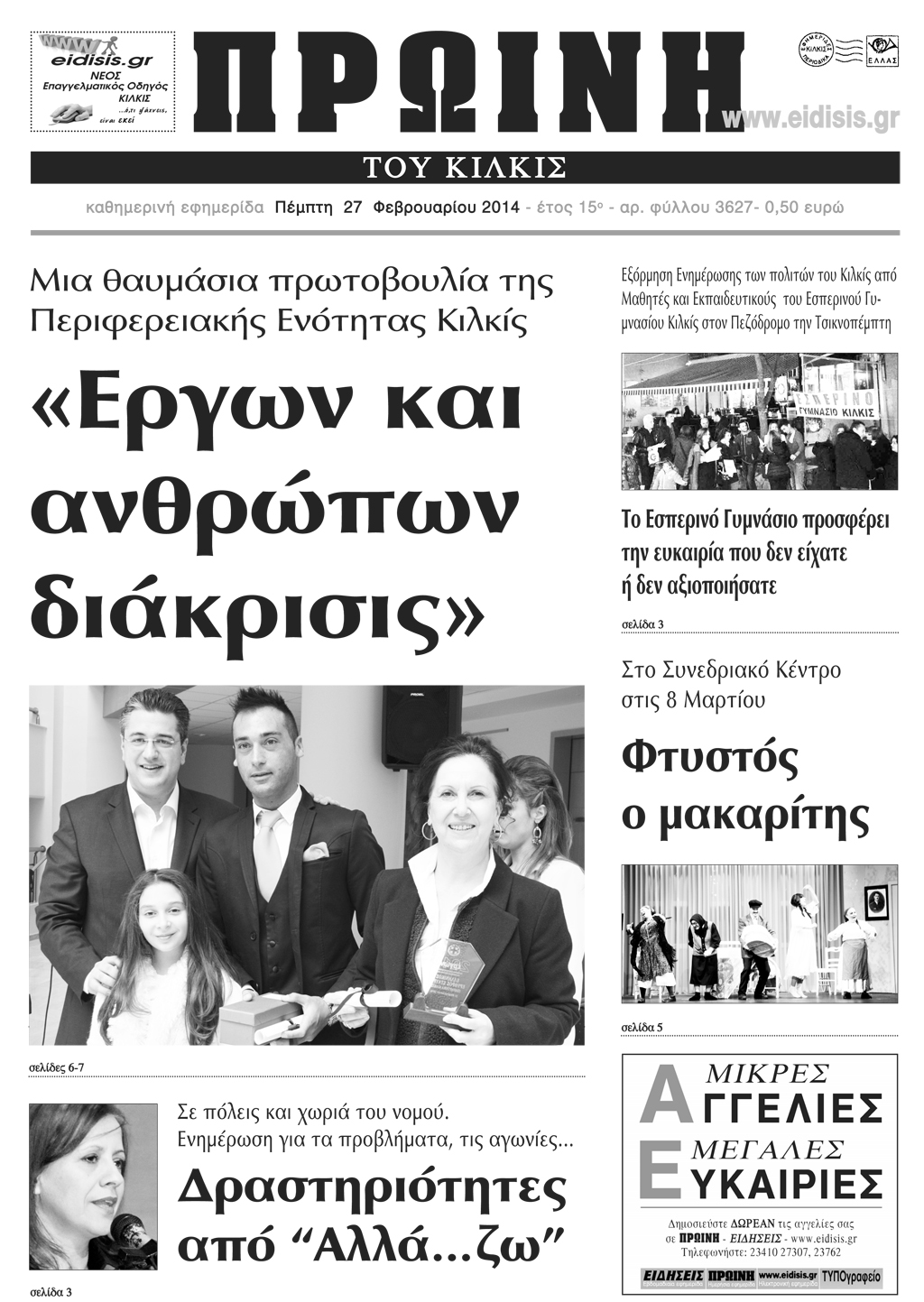 Διαβάστε το νέο πρωτοσέλιδο της Πρωινής του Κιλκίς, μοναδικής καθημερινής εφημερίδας του ν. Κιλκίς
