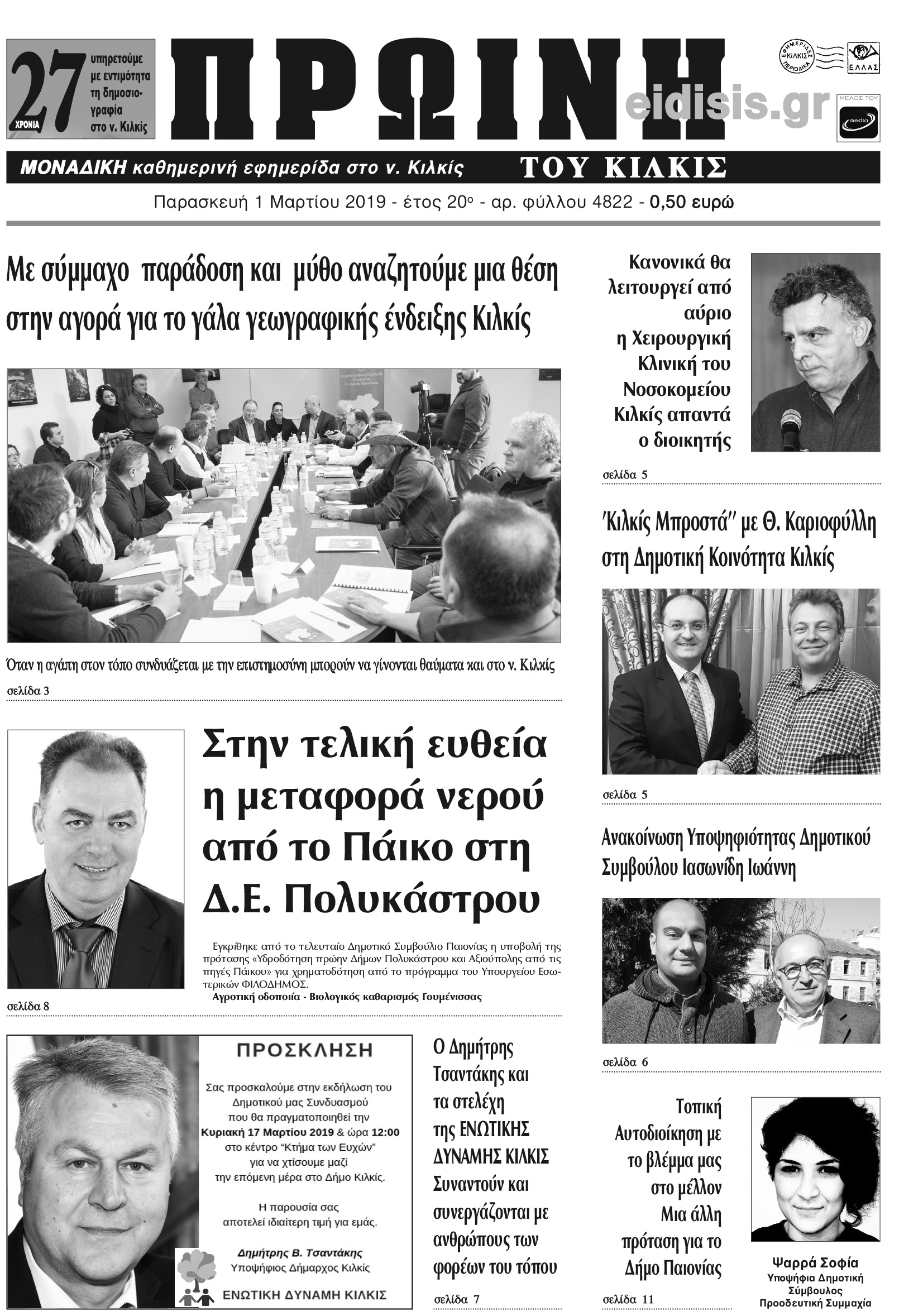 Διαβάστε το νέο πρωτοσέλιδο της Πρωινής του Κιλκίς, μοναδικής καθημερινής εφημερίδας του ν. Κιλκίς