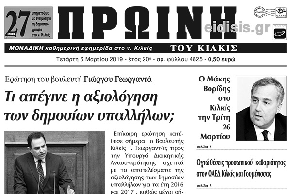 Διαβάστε το νέο πρωτοσέλιδο της Πρωινής του Κιλκίς, μοναδικής καθημερινής εφημερίδας του ν. Κιλκίς