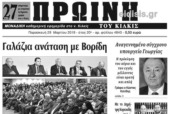 Διαβάστε το νέο πρωτοσέλιδο της Πρωινής του Κιλκίς, μοναδικής καθημερινής εφημερίδας του ν. Κιλκίς