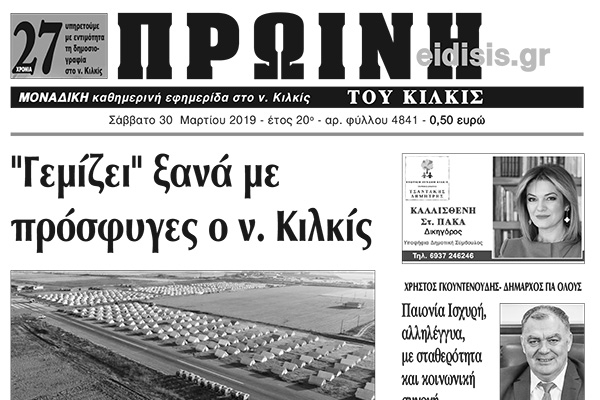Διαβάστε το νέο πρωτοσέλιδο της Πρωινής του Κιλκίς, μοναδικής καθημερινής εφημερίδας του ν. Κιλκίς