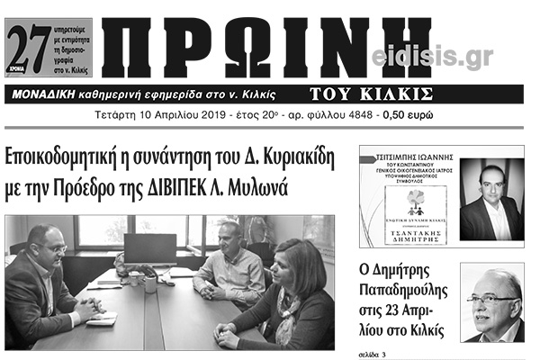 Διαβάστε το νέο πρωτοσέλιδο της Πρωινής του Κιλκίς, μοναδικής καθημερινής εφημερίδας του ν. Κιλκίς