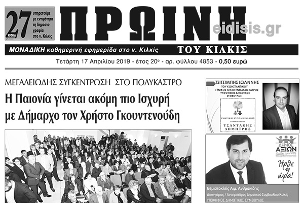 Διαβάστε το νέο πρωτοσέλιδο της Πρωινής του Κιλκίς, μοναδικής καθημερινής εφημερίδας του ν. Κιλκίς