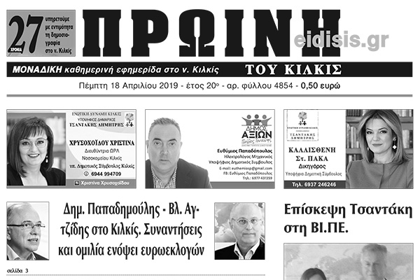 Διαβάστε το νέο πρωτοσέλιδο της Πρωινής του Κιλκίς, μοναδικής καθημερινής εφημερίδας του ν. Κιλκίς