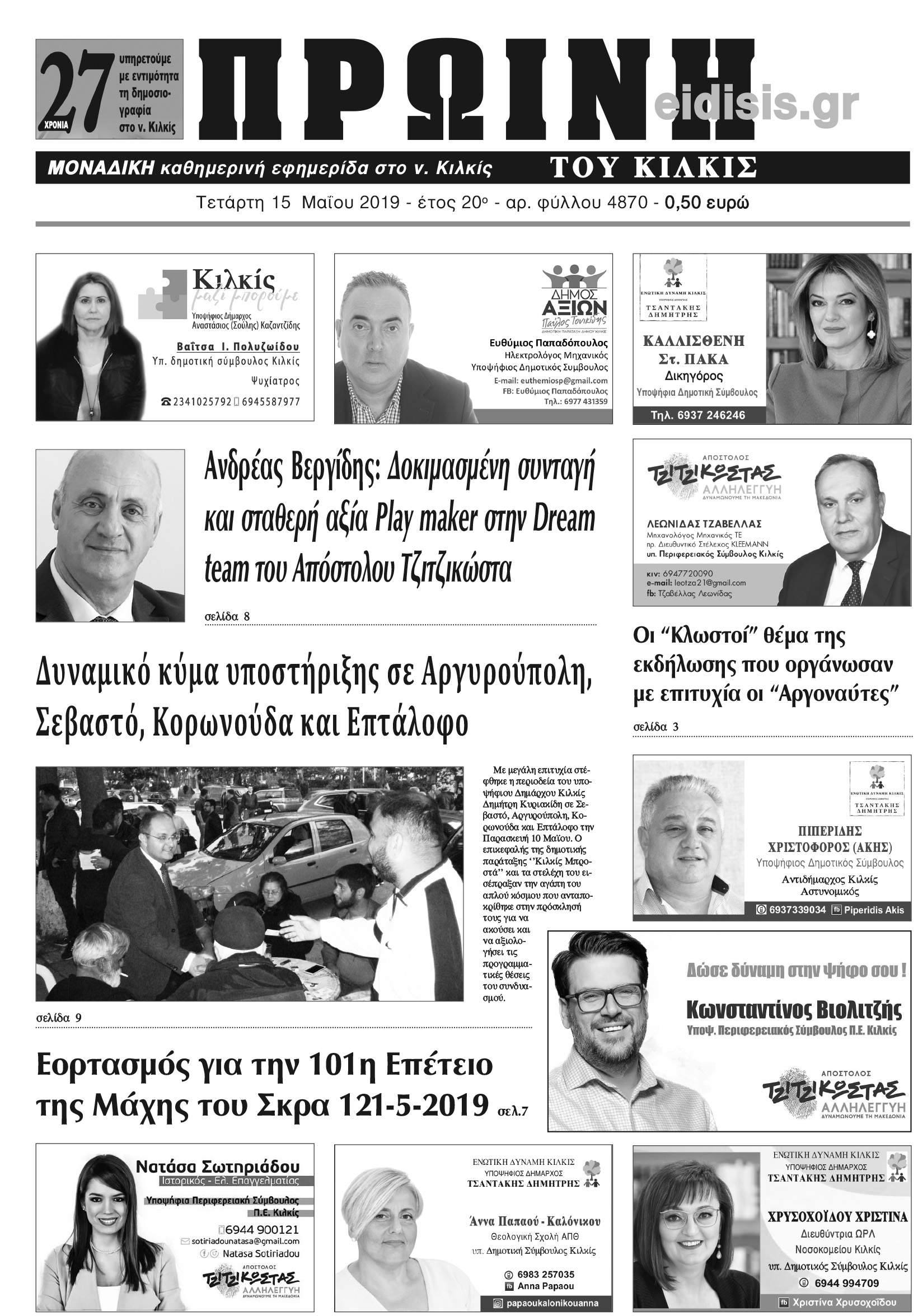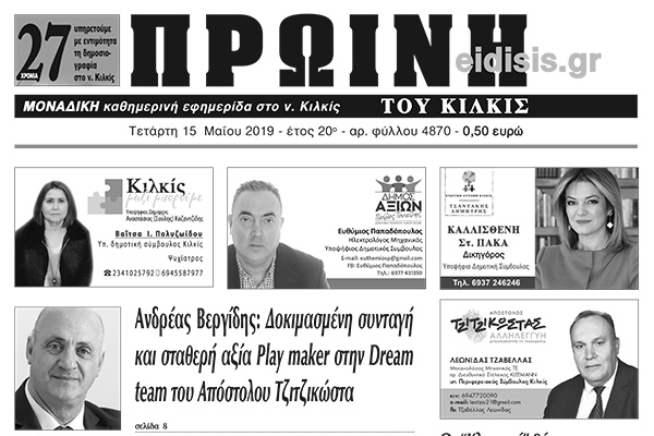 Διαβάστε το νέο πρωτοσέλιδο της Πρωινής του Κιλκίς, μοναδικής καθημερινής εφημερίδας του ν. Κιλκίς