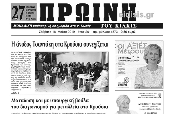 Διαβάστε το νέο πρωτοσέλιδο της Πρωινής του Κιλκίς, μοναδικής καθημερινής εφημερίδας του ν. Κιλκίς