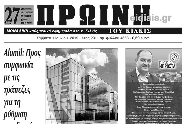 Διαβάστε το νέο πρωτοσέλιδο της Πρωινής του Κιλκίς, μοναδικής καθημερινής εφημερίδας του ν. Κιλκίς