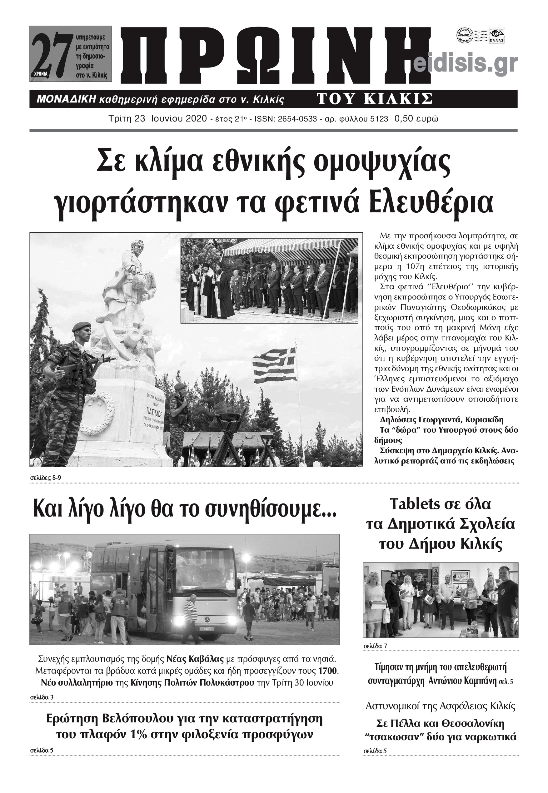 Διαβάστε το νέο πρωτοσέλιδο της Πρωινής του Κιλκίς, μοναδικής καθημερινής εφημερίδας του ν. Κιλκίς (23-6-2020)