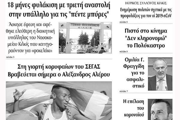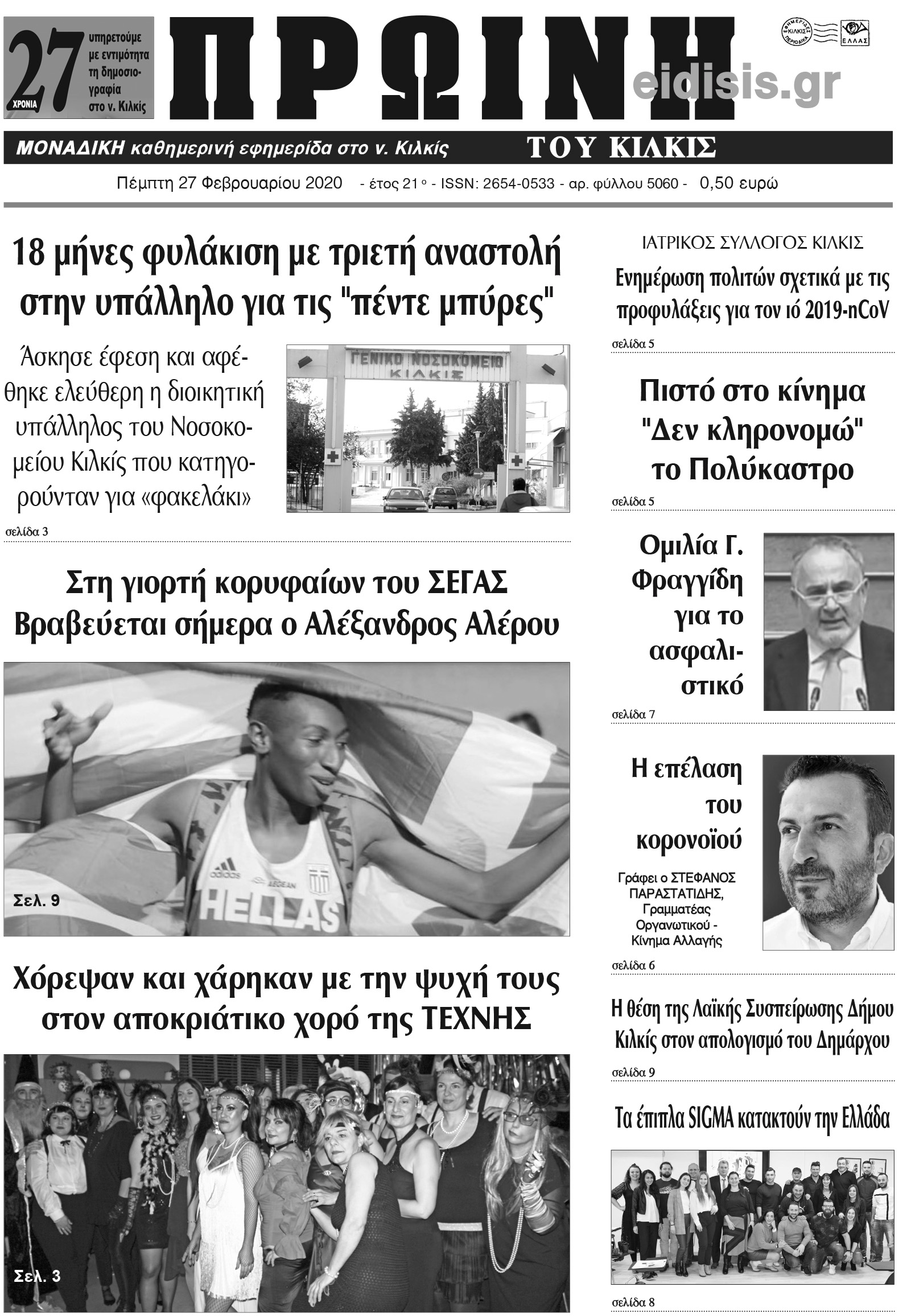Διαβάστε το νέο πρωτοσέλιδο της Πρωινής του Κιλκίς, μοναδικής καθημερινής εφημερίδας του ν. Κιλκίς (27-2-2020)