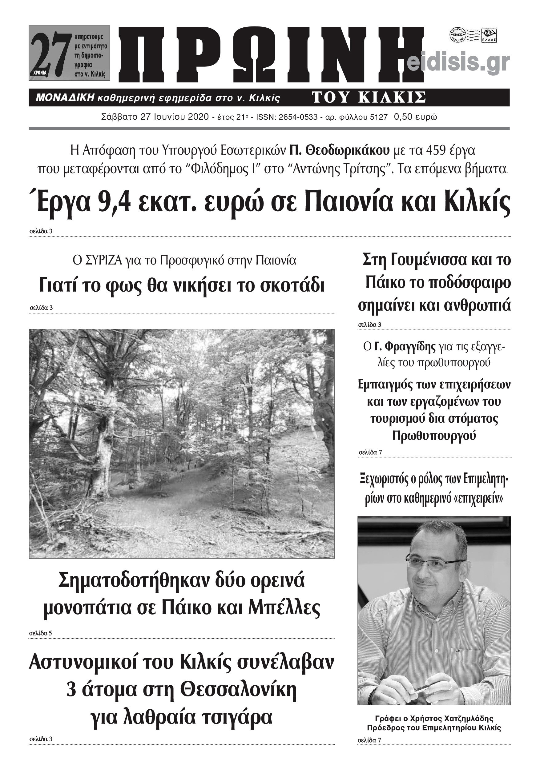 Διαβάστε το νέο πρωτοσέλιδο της Πρωινής του Κιλκίς, μοναδικής καθημερινής εφημερίδας του ν. Κιλκίς (27-6-2020)