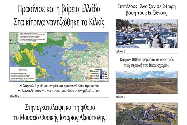Διαβάστε το νέο πρωτοσέλιδο της Πρωινής του Κιλκίς, μοναδικής καθημερινής εφημερίδας του ν. Κιλκίς (3-7-2021)