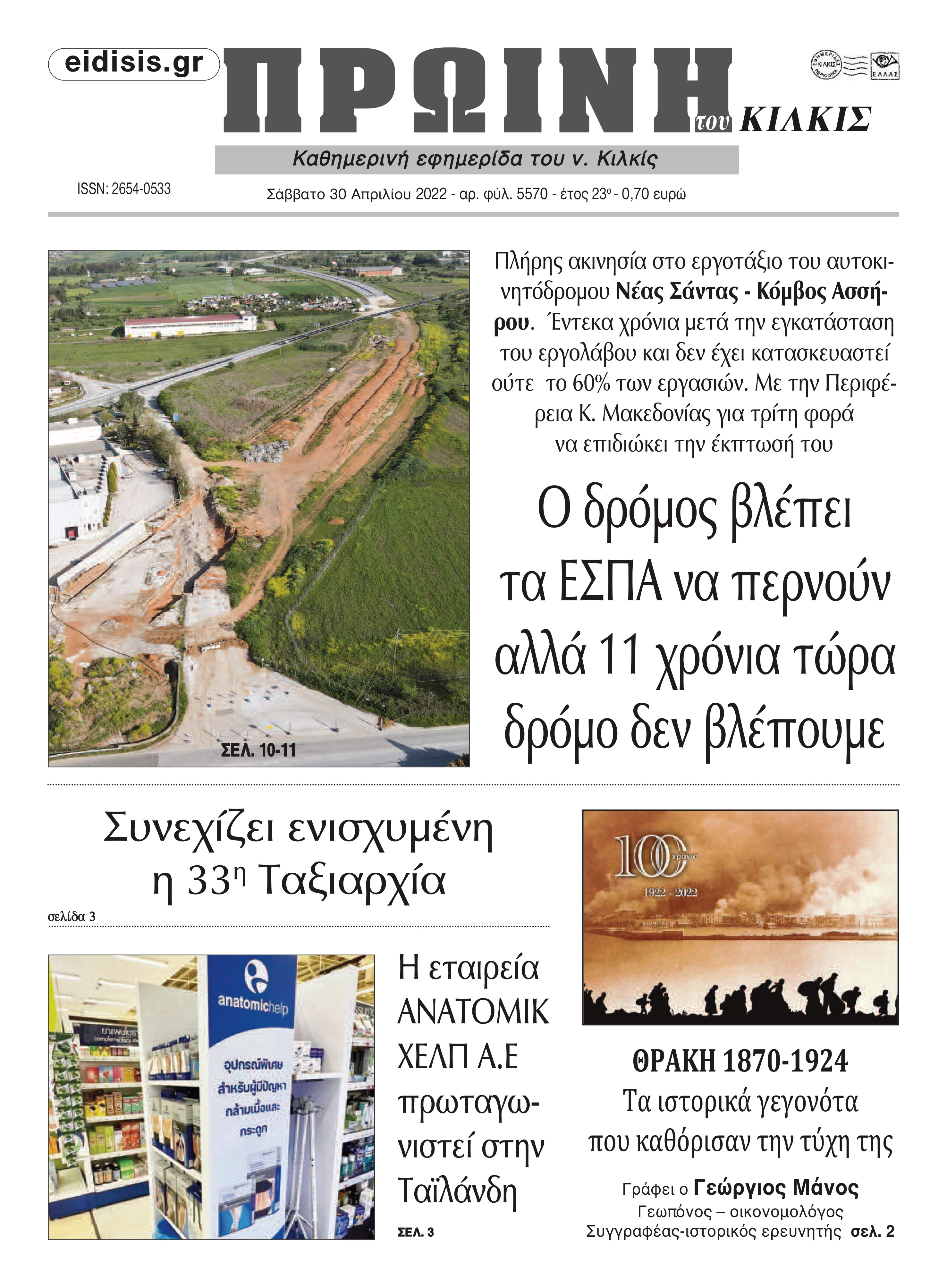 Διαβάστε το νέο πρωτοσέλιδο της Πρωινής του Κιλκίς, μοναδικής καθημερινής εφημερίδας του ν. Κιλκίς (30-4-2022)