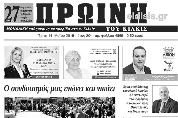 Διαβάστε το νέο πρωτοσέλιδο της ΠΡΩΙΝΗΣ του Κιλκίς, της μοναδικής καθημερινής εφημερίδας του ν. Κιλκίς