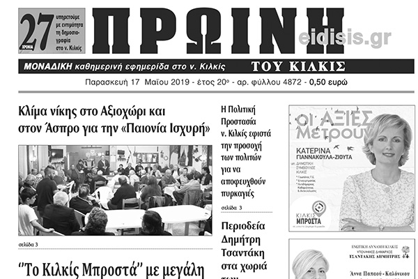 Διαβάστε το νέο πρωτοσέλιδο της ΠΡΩΙΝΗΣ του Κιλκίς, της μοναδικής καθημερινής εφημερίδας του ν. Κιλκίς