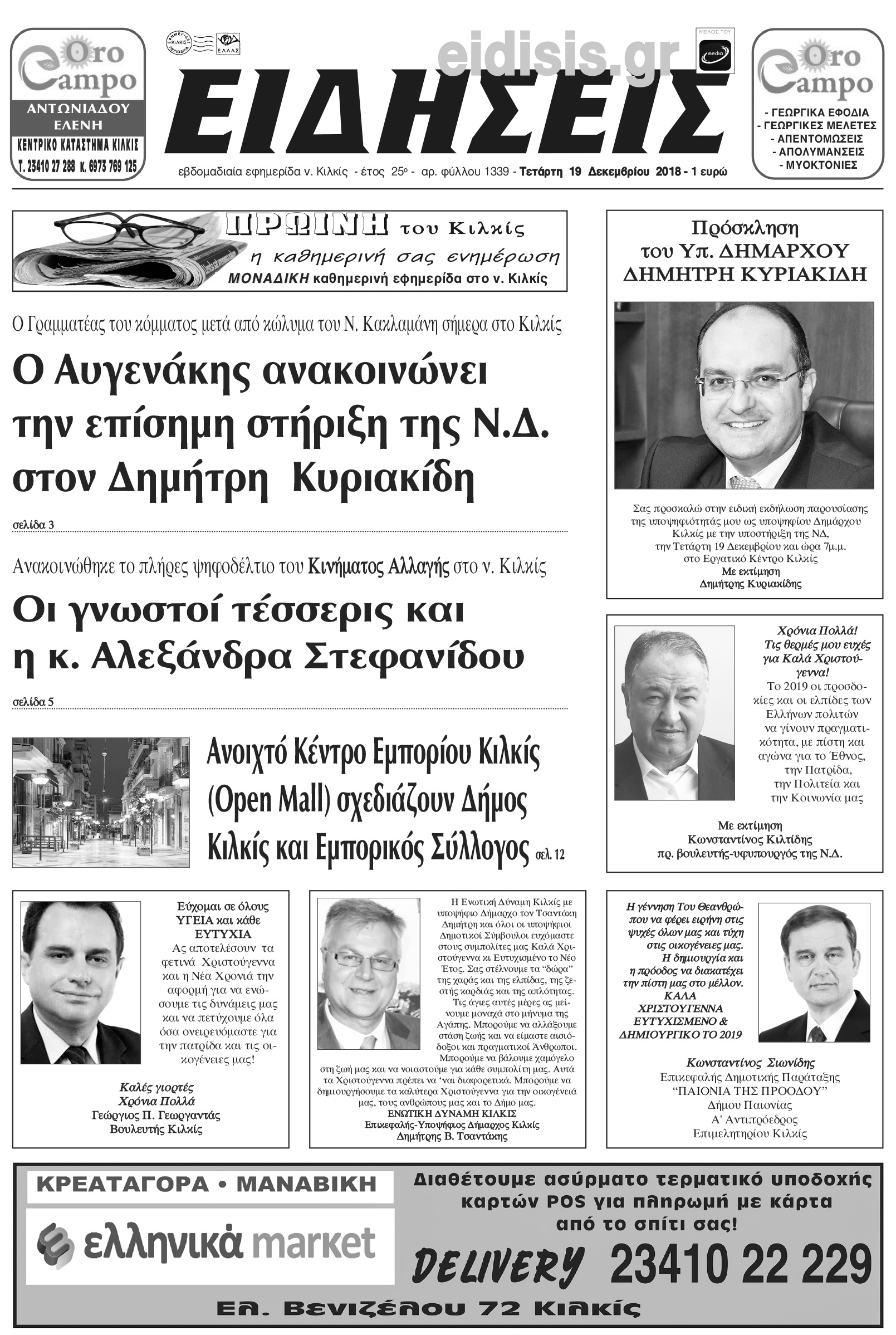 Διαβάστε το νέο πρωτοσέλιδο των ΕΙΔΗΣΕΩΝ, της εβδομαδιαίας εφημερίδας του ν. Κιλκίς