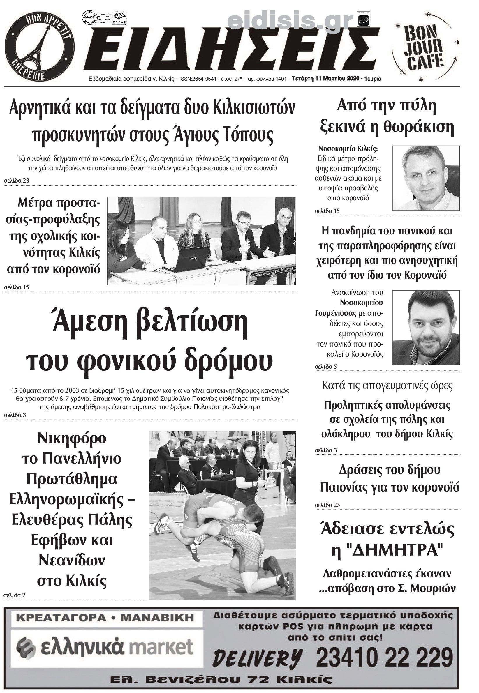 Διαβάστε το νέο πρωτοσέλιδο των ΕΙΔΗΣΕΩΝ του Κιλκίς, της εβδομαδιαίας εφημερίδας του ν. Κιλκίς (11-3-2020)