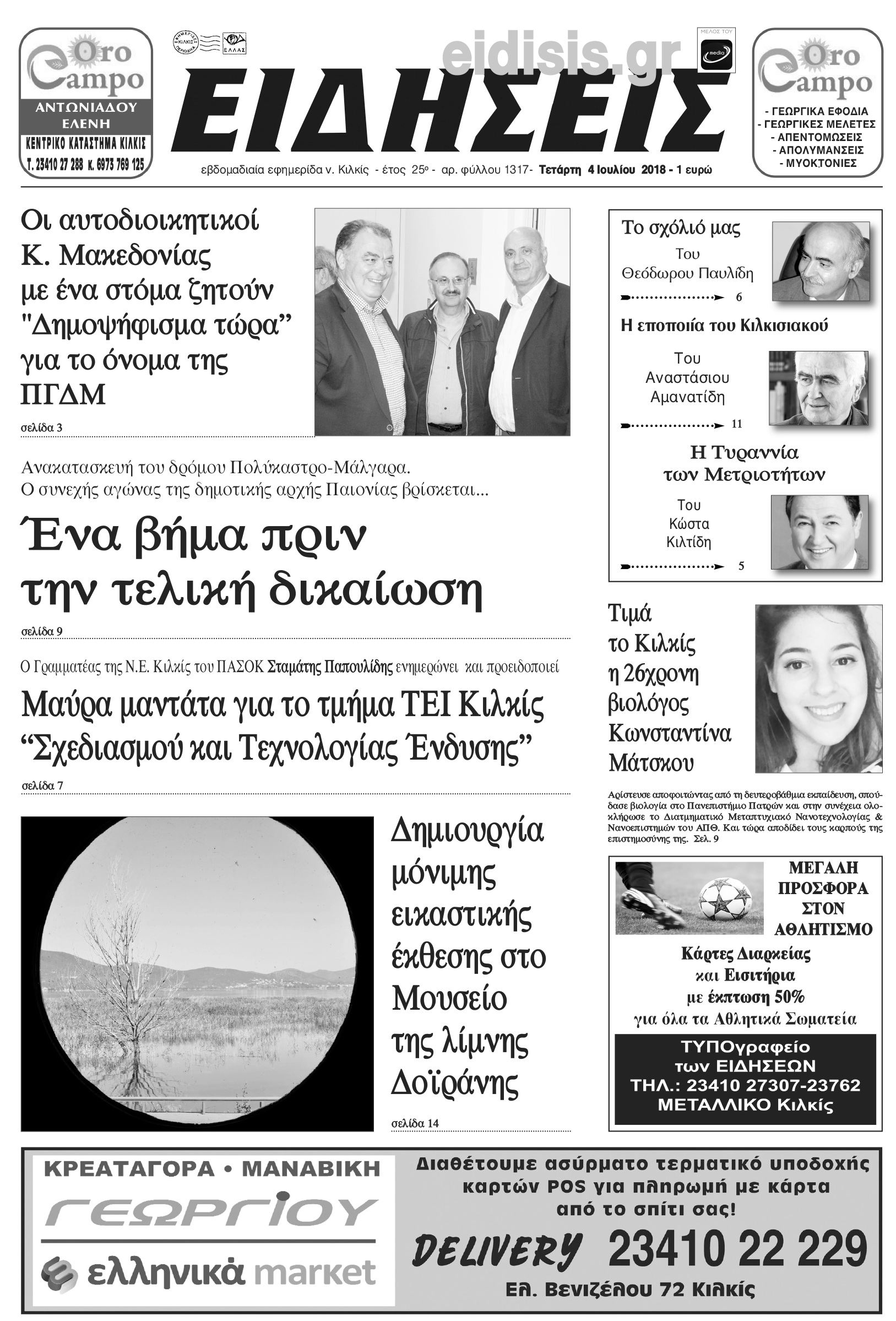 Διαβάστε το νέο πρωτοσέλιδο των ΕΙΔΗΣΕΩΝ του Κιλκίς, της εβδομαδιαίας εφημερίδας του ν. Κιλκίς