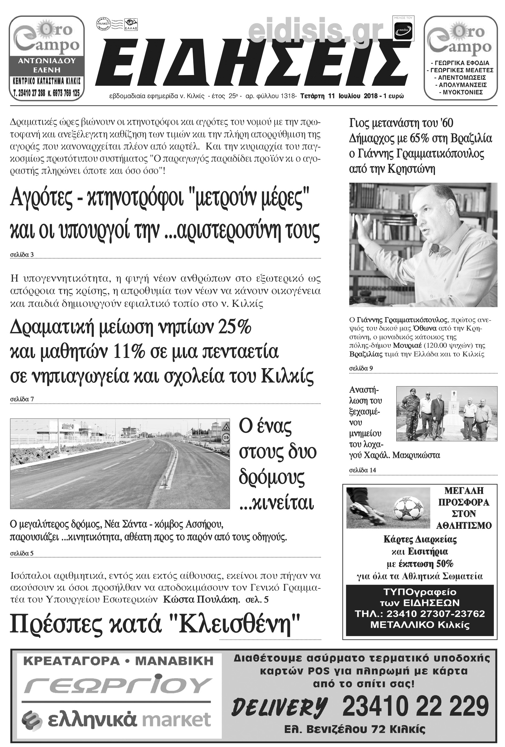 Διαβάστε το νέο πρωτοσέλιδο των ΕΙΔΗΣΕΩΝ του Κιλκίς, της εβδομαδιαίας εφημερίδας του ν. Κιλκίς