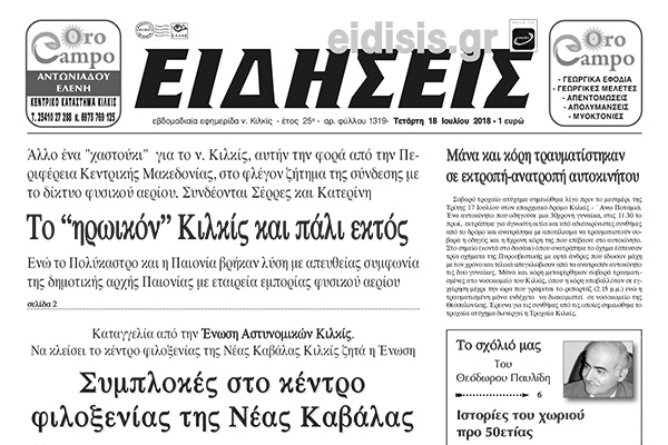 Διαβάστε το νέο πρωτοσέλιδο των ΕΙΔΗΣΕΩΝ του Κιλκίς, της εβδομαδιαίας εφημερίδας του ν. Κιλκίς
