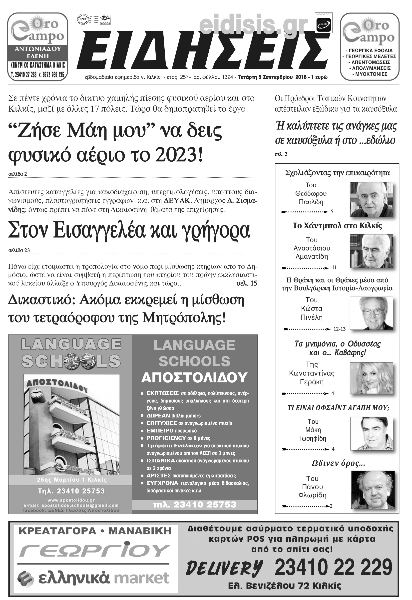 Διαβάστε το νέο πρωτοσέλιδο των ΕΙΔΗΣΕΩΝ του Κιλκίς, της εβδομαδιαίας εφημερίδας του ν. Κιλκίς