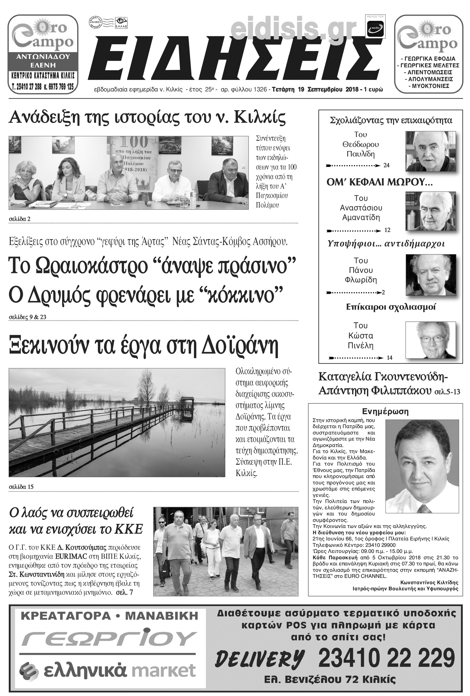 Διαβάστε το νέο πρωτοσέλιδο των ΕΙΔΗΣΕΩΝ του Κιλκίς, της εβδομαδιαίας εφημερίδας του ν. Κιλκίς